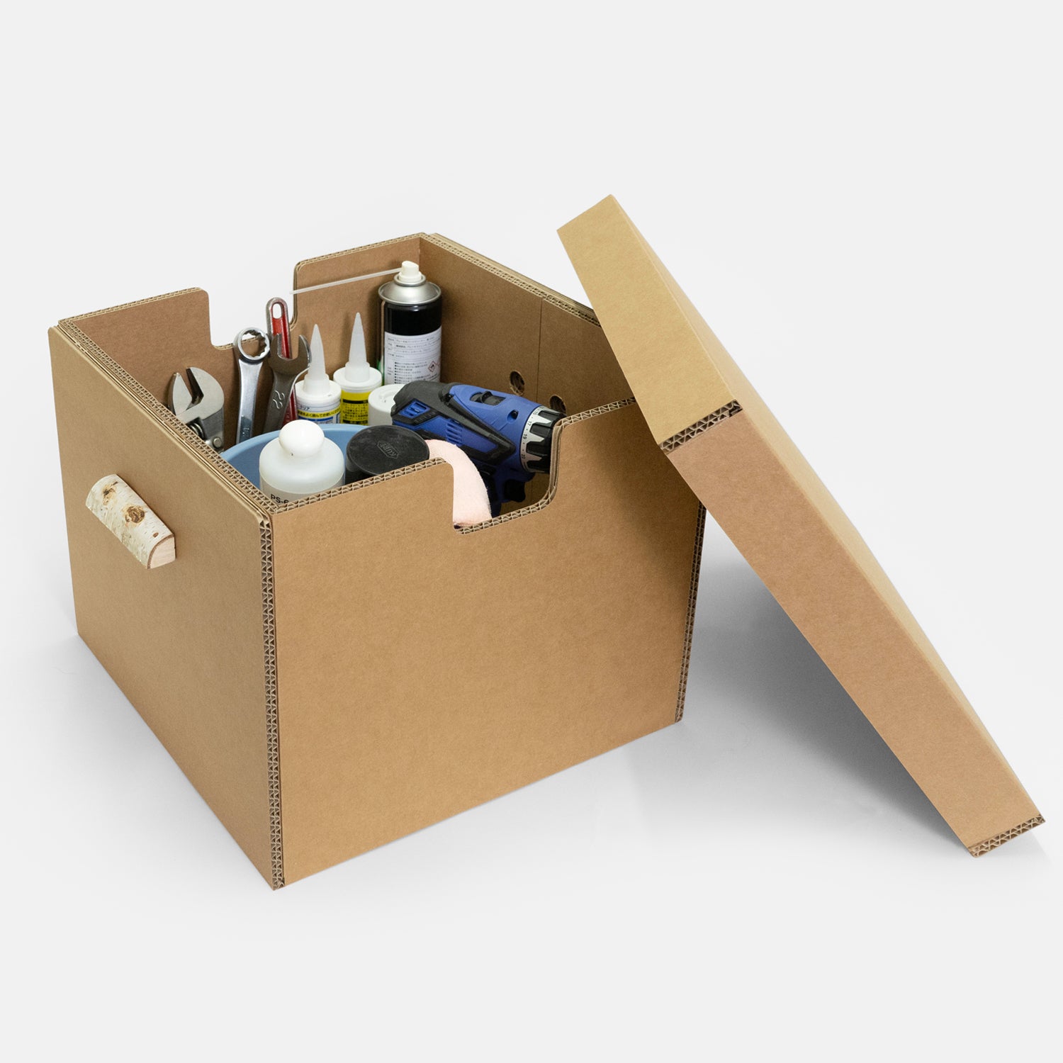 北海道産のシラカンバ(白樺)をハンドル部分に贅沢に使用した、日本製収納ボックス。