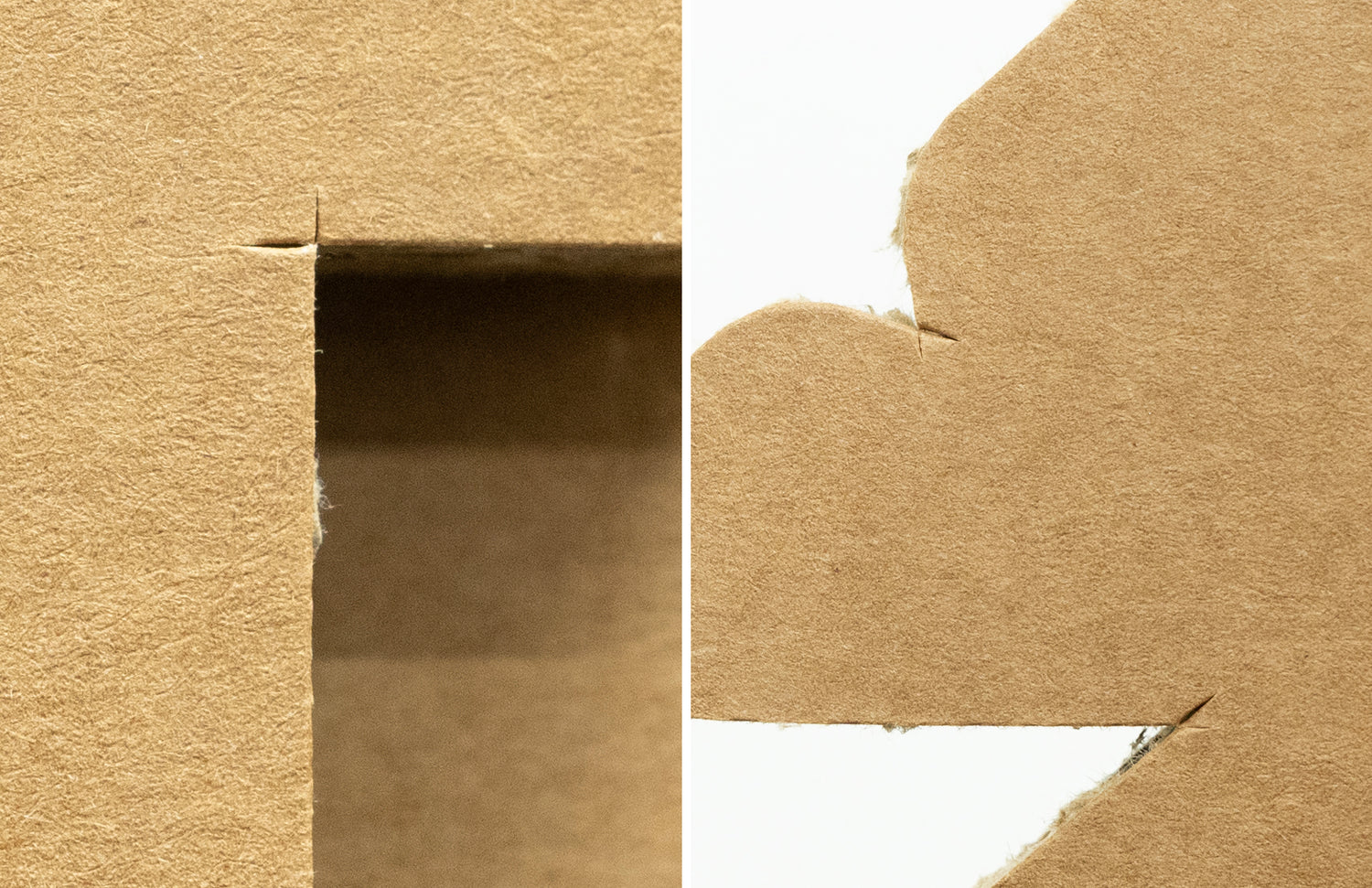 強化ダンボールは厚みがあるため、内角部分にはカット跡が残ります。ご了承ください。