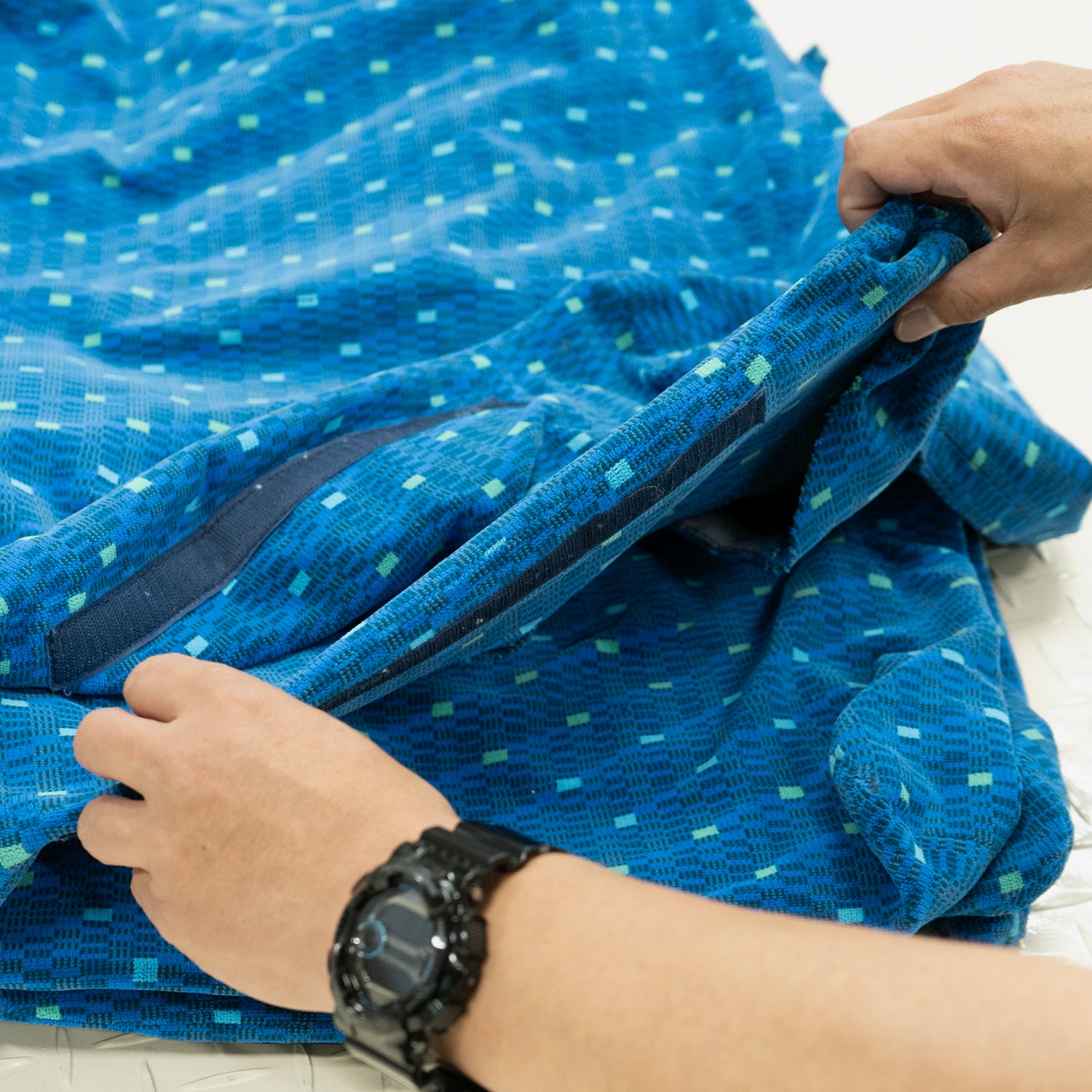 北海道赤平工場では、主に〈リサイクルの材料〉と〈新品の材料〉を2層のシート状にして使用し、リサイクル材使用率は約50%。強度としなやかさのバランスを保ち、長年高品質のプロダクトを製造してきた実績のある配合です。